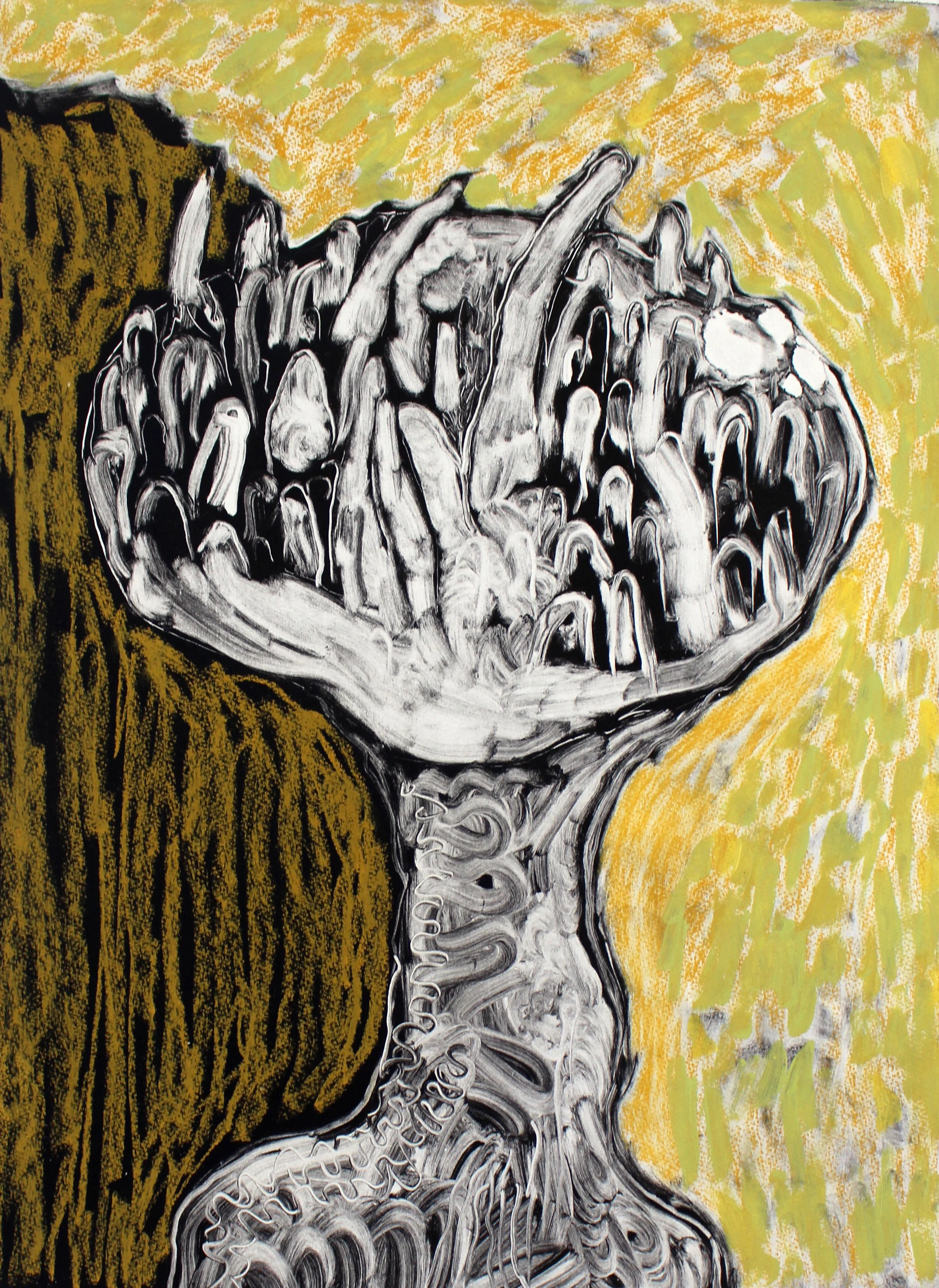 Cocoon, 76 x 56cm, etching ink, oil & pastel